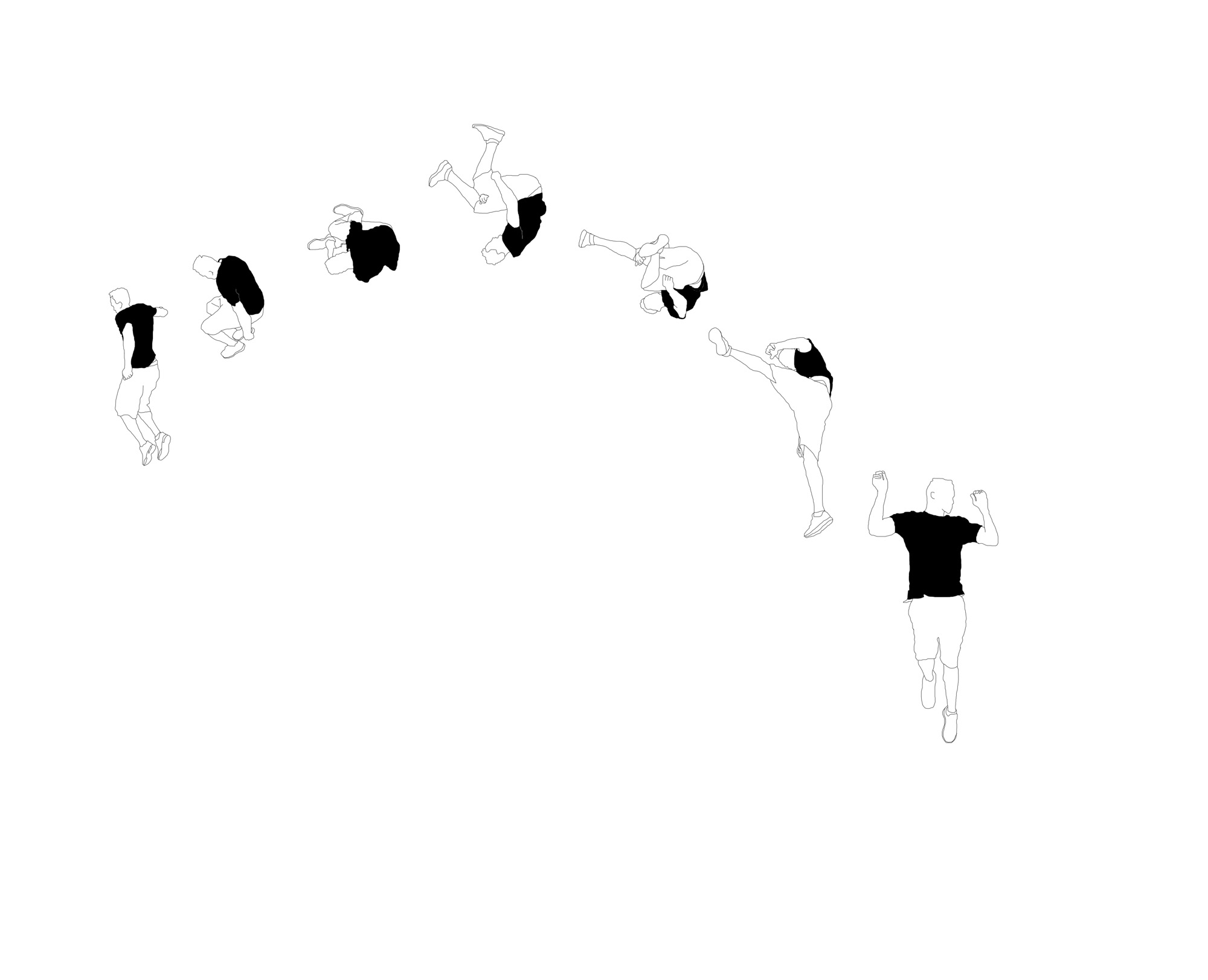 Ce dessin tiré de photographies prises en rafale d’acrobates se produisant sur la Plaça de Espanya à Barcelona n’a jamais été produit mais a servi de projet pour la Résidence effectuée dans le cadre du festival international d’art contemporain La Selva de l’Art effectuée à la Selva de Mar, Espagne, entre 26 juin au 31 août 2016 et pour laquelle un autre dessin mural a été retenu.