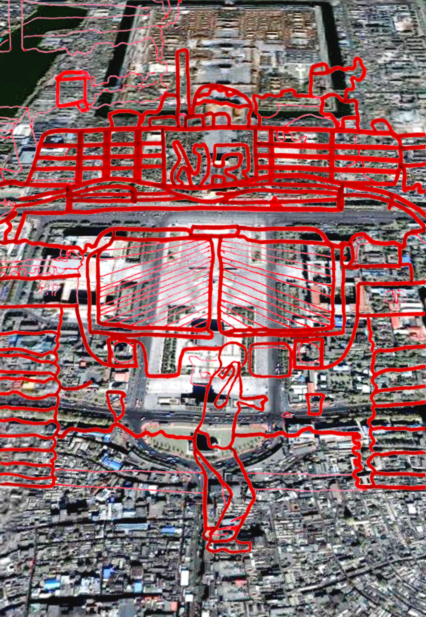 Dessin à la souris sur image satellitaire, Tirage numérique sur aluminium,
